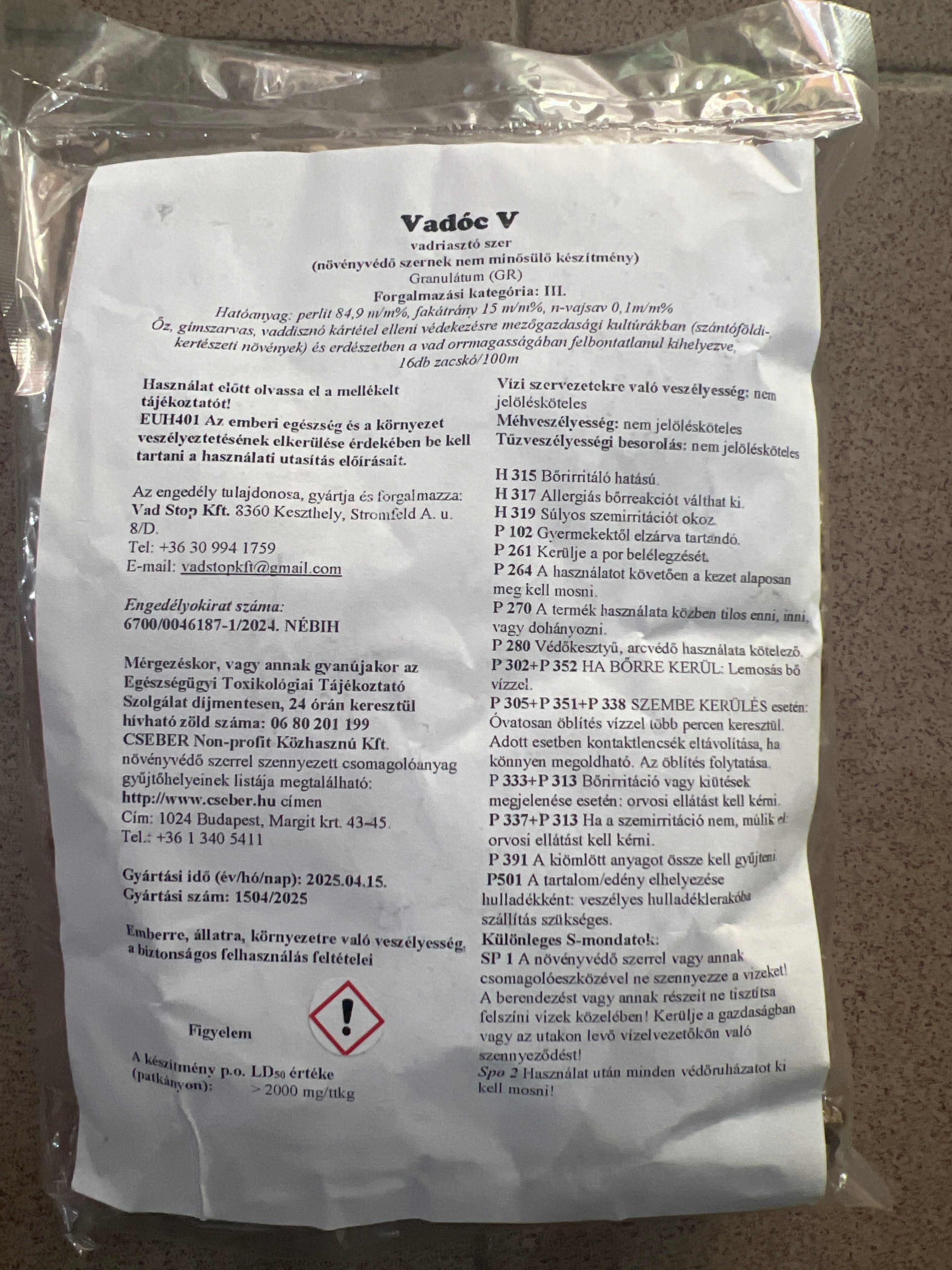 - Kövesse a címkén található utasításokat
