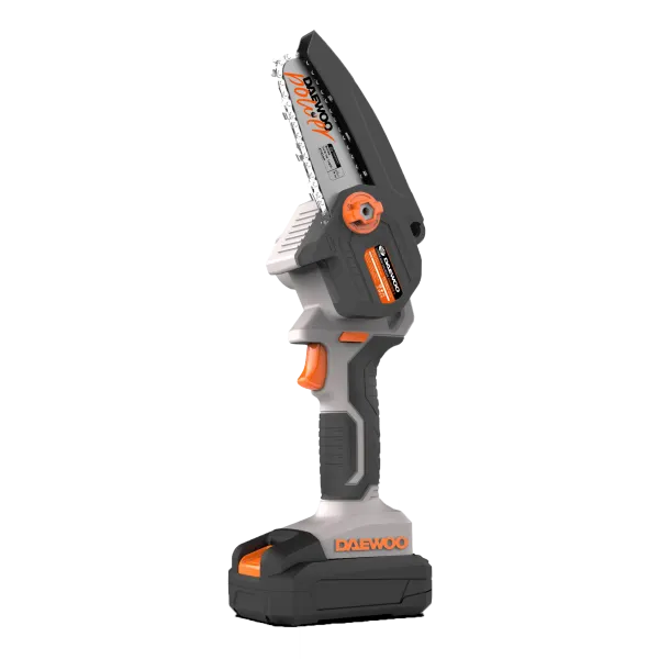 Daewoo DALMCH18-1 KIT akkus mini láncfűrész 2000mAh akkumulátorral és gyorstöltővel. Kis méretei miatt könnyen használható, nem szükséges túl nagy erőt kifejteni vele. Gallyak és ágak fűrészelésére alkalmas. Praktikus kofferben.