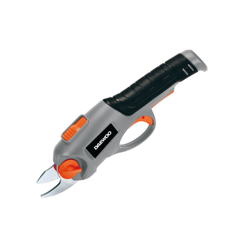Daewoo DACP36LI akkus metszőolló erős fémházzal. A gumírozott nyél és a biztonsági kioldó gondoskodik a kényelmes és balesetmentes munkáról.